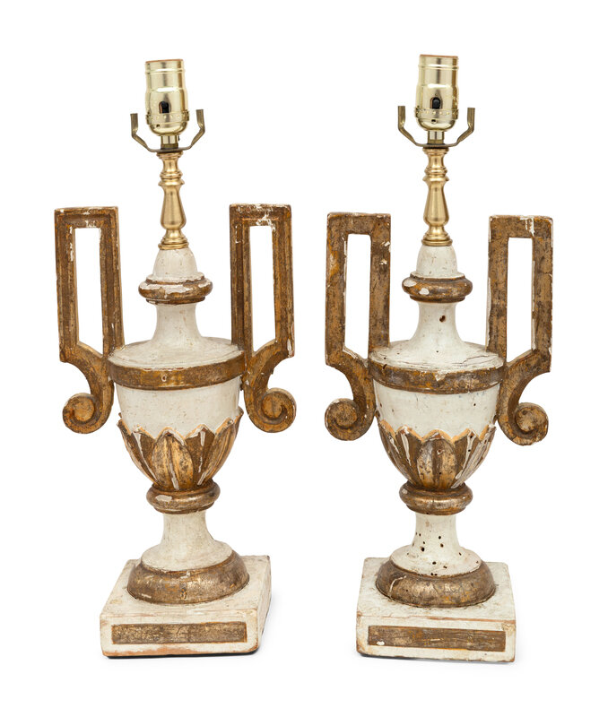 A Pair of Italian Painted and Parcel-Gilt Finials