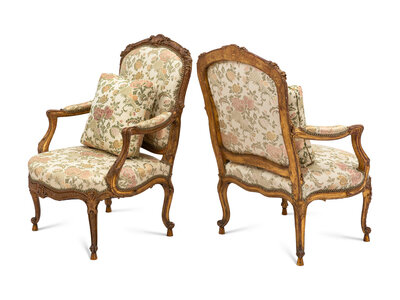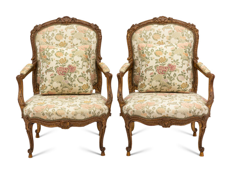 A Pair of Italian Rococo Style Giltwood Fauteuils
