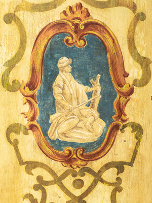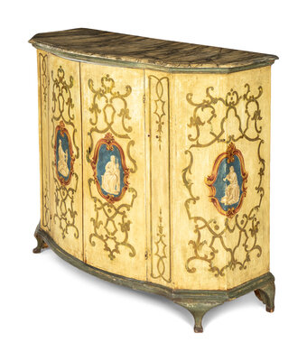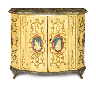 An Italian Rococo Paint Decorated Faux Marble-Top Console Cabinet