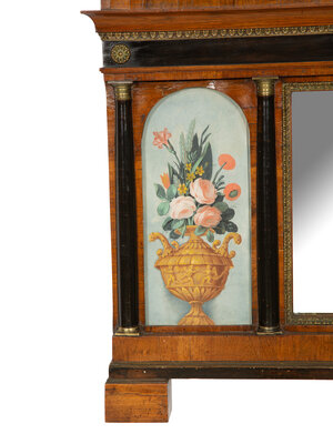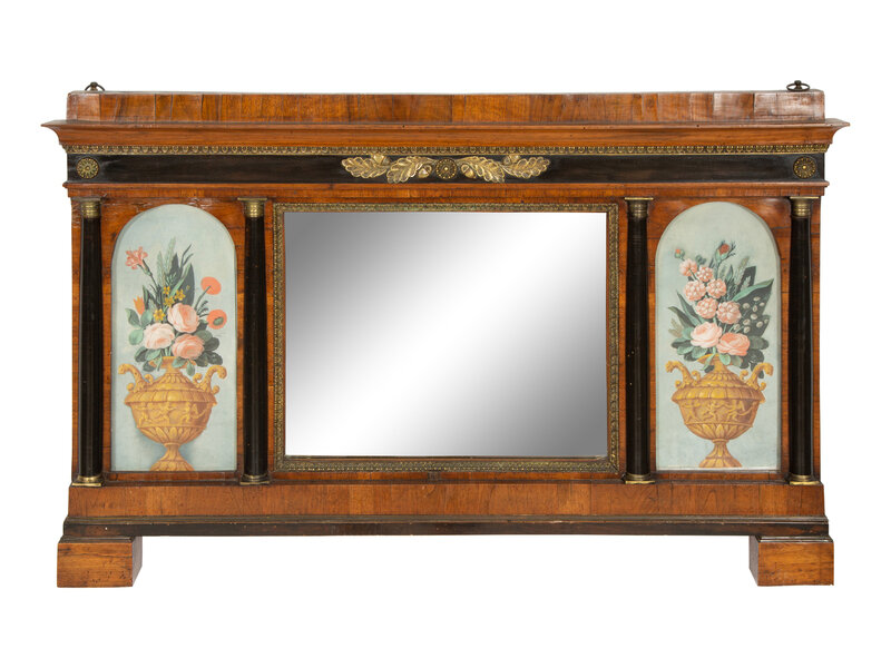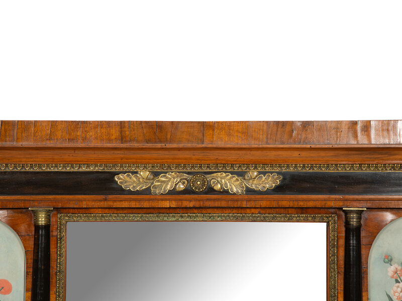 A North Italian Ebonized and Gilt Metal Mounted Walnut Overmantel Mirror
