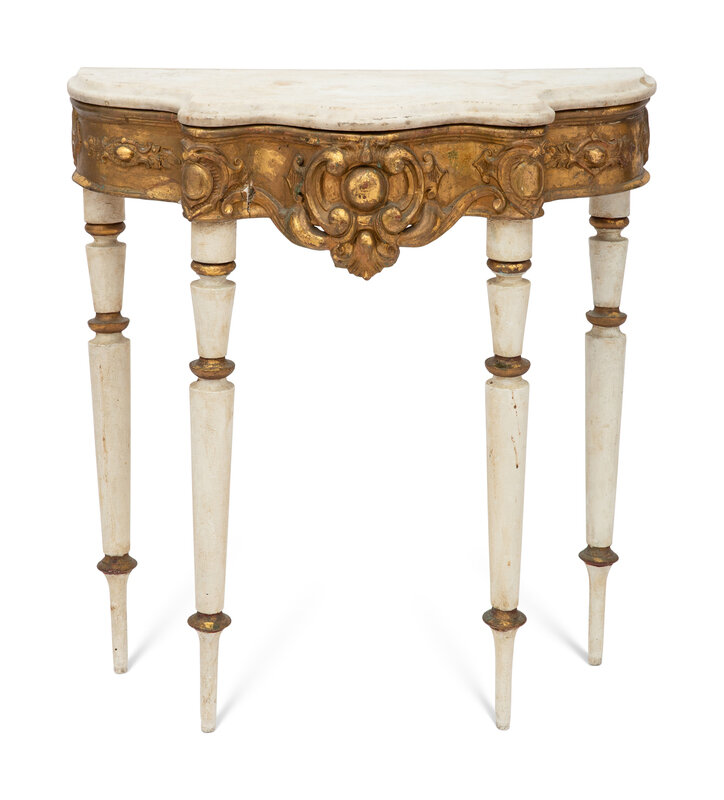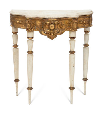 An Italian Painted and Parcel-Gilt Alabaster-Top Console Table