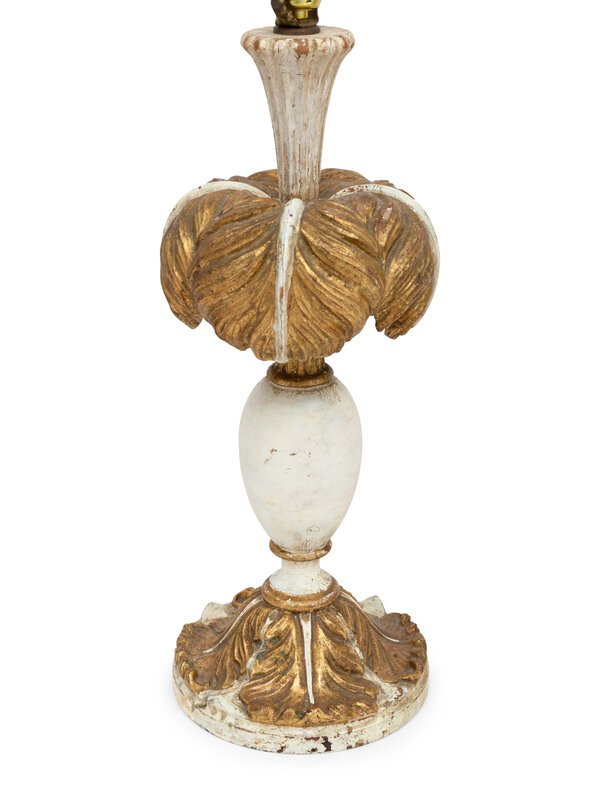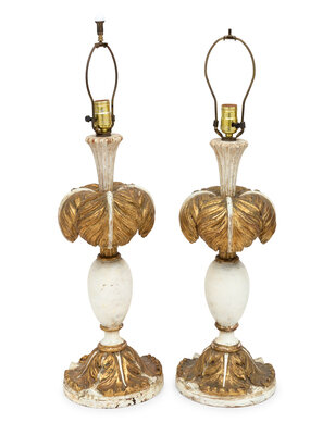 A Pair of Italian Painted and Parcel-Gilt Palm Frond Table Lamps