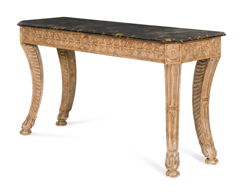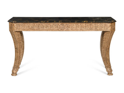 A Neoclassical Style Giltwood and Faux Marble-Top Console Table