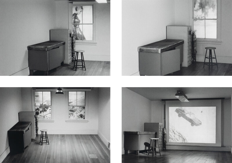 Four works from Studio Projections, 1979 (Number 17, Car Crash; Number 22, Beauty Treatment; Number A1, Village; and Number A3, Dust Storm); printed 2013