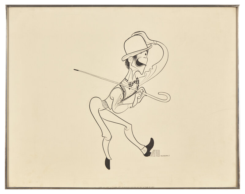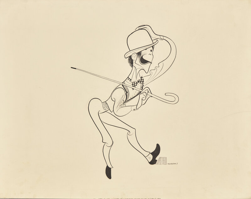 signed Hirschfeld and inscribed Philadelphia 7 (lower right center), also inscribed Joel Grey as Cohan in "George M" - A New Musical with Music and Lyrics by "George M." Cohan (along bottom)