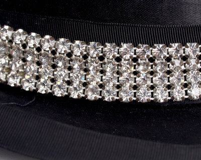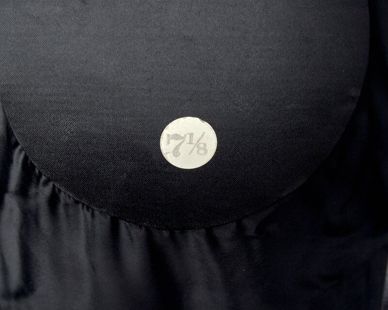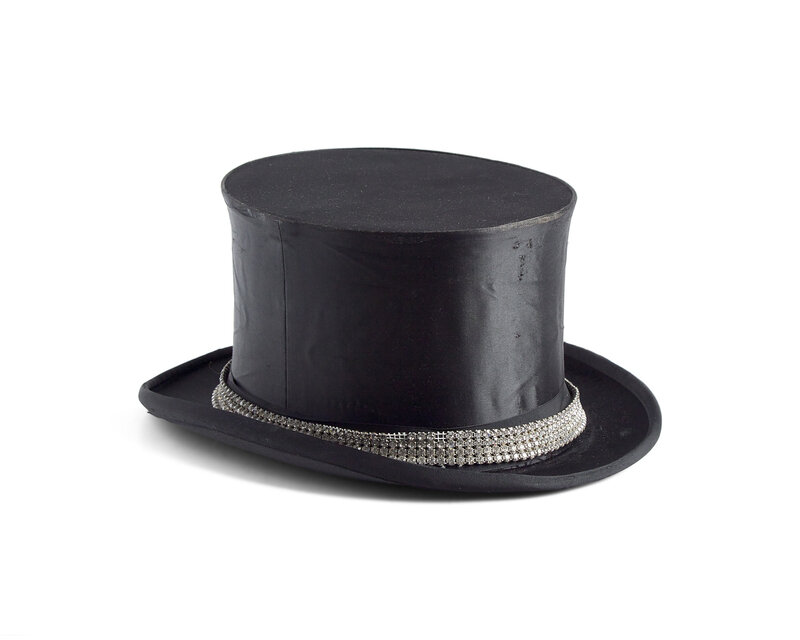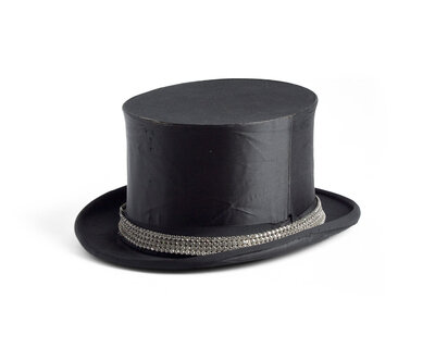 Screen Worn: Retractable top hat in black satin with black grosgrain details and rhinestone trim. Worn by Joel Grey in the 1972 film production of Cabaret.