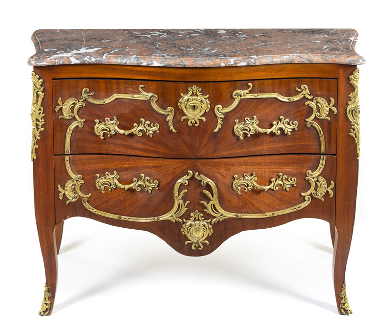 A Louis XV Style Gilt Metal Mounted Commode Height 35 x width 41 x depth 20 1/2 inches.