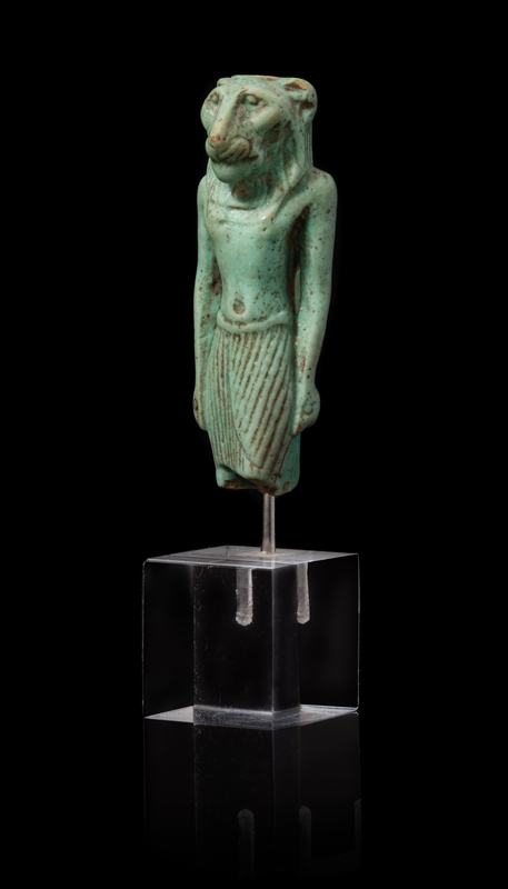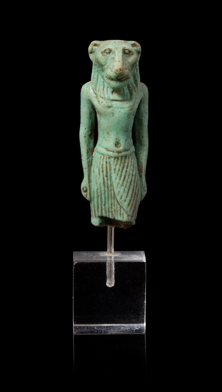 An Egyptian Faience Amulet of Mahes Height 2 1/4 inches.