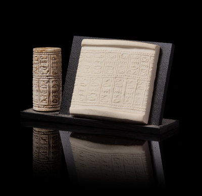An Egyptian Glazed Steatite Cylinder Seal Height 1 inch.