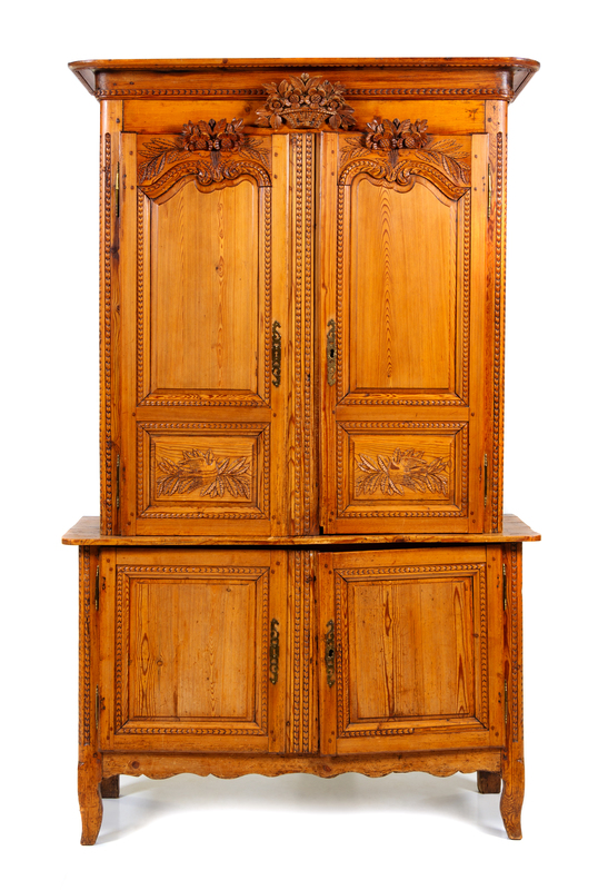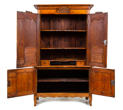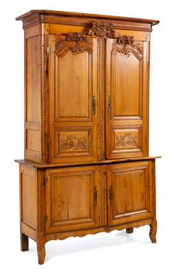 A French Provincial Fruitwood Cabinet Height 87 x width 54 1/2 x depth 21 1/2 inches.