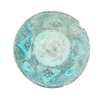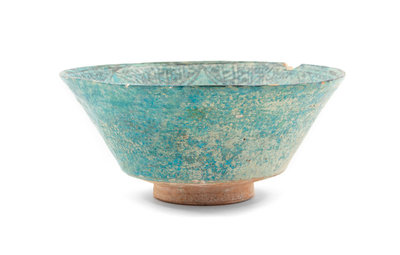 An Islamic Black and Blue Glazed Pottery Bowl Diameter 8 1/2 inches.