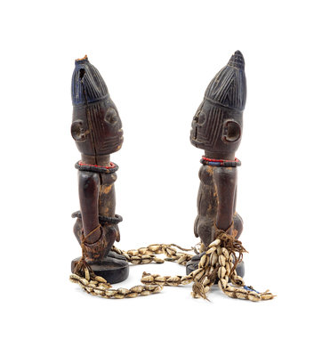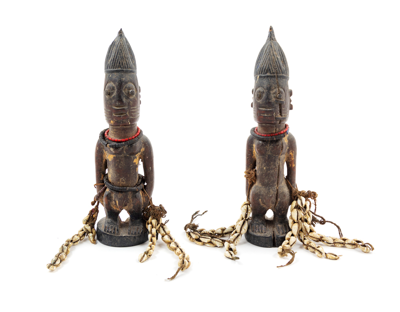 A Pair of Yoruba Twin Ibeji Figures Height 10 1/4 inches.