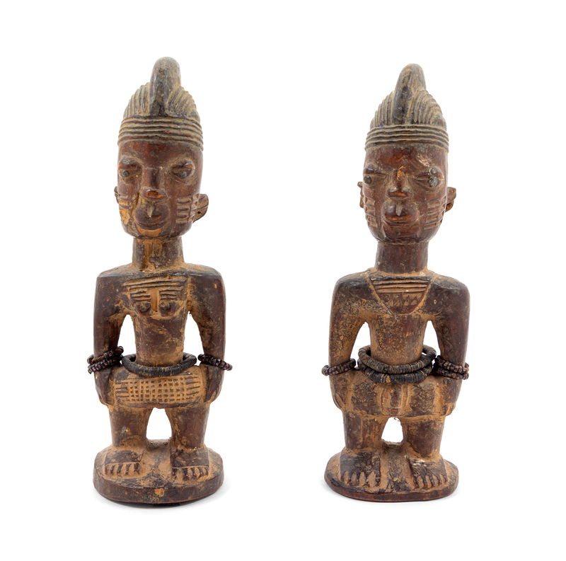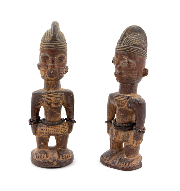 A Pair of Yoruba Twin Ibeji Figures Height 12 inches.