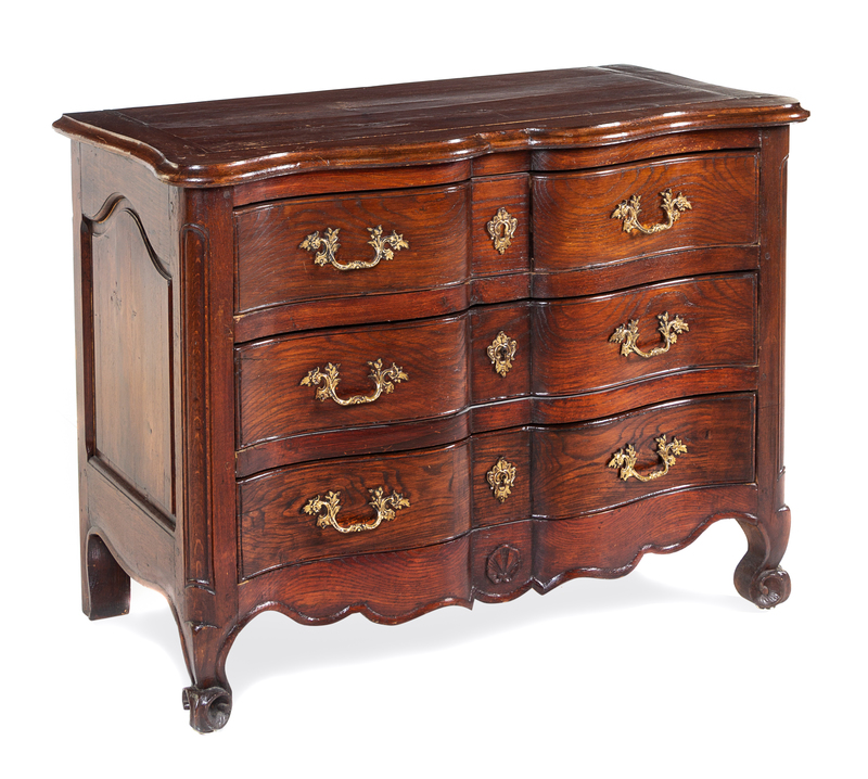 A Louis XV Oak Commode Height 34 x width 42 1/2 x depth 20 inches.