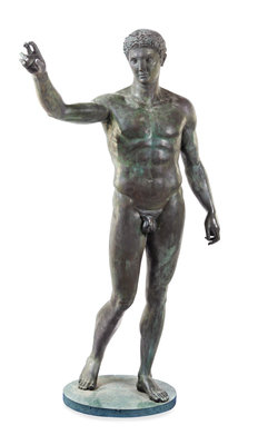 A Monumental Bronze Figure of the Antikythera Ephebe Height 75 inches.
