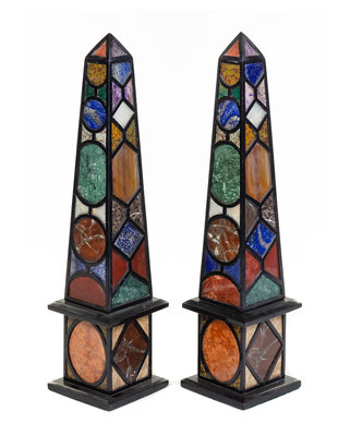 A Pair of Italian Specimen Marble Obelisks Height 40 1/4 inches.
