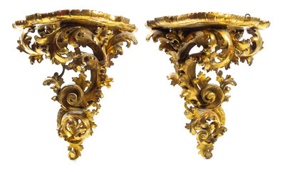 A Pair of Large Italian Giltwood Wall Brackets Height 19 1/2 inches.