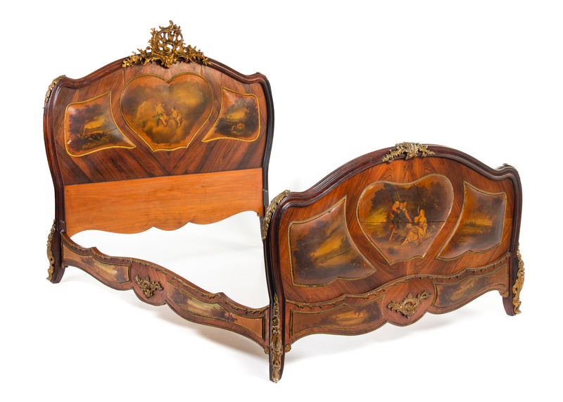 A Louis XV Style Vernis Martin Bed Height of headboard 56 1/2 inches.