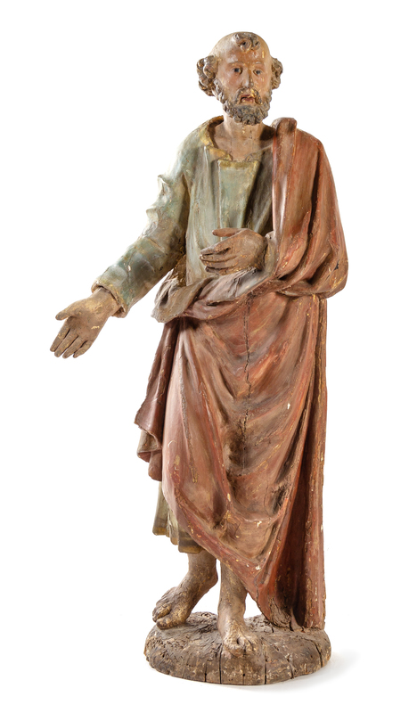 A Polychromed Figure of Saint Peter Height 47 inches.