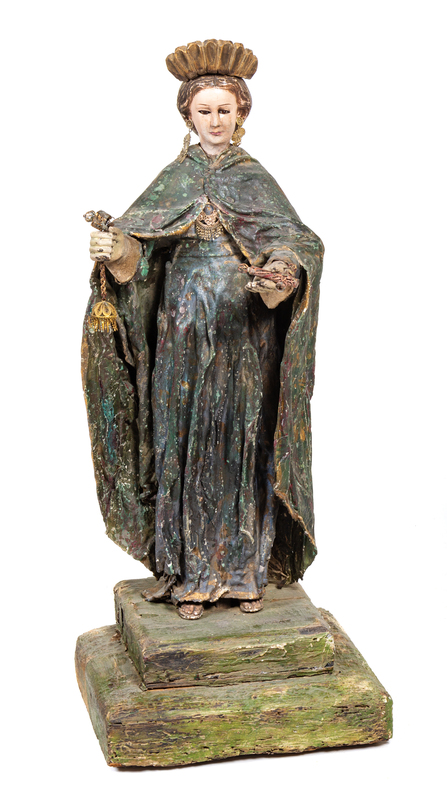 A Spanish Colonial Polychrome Figure Height 25 x width 12 1/2 inches.