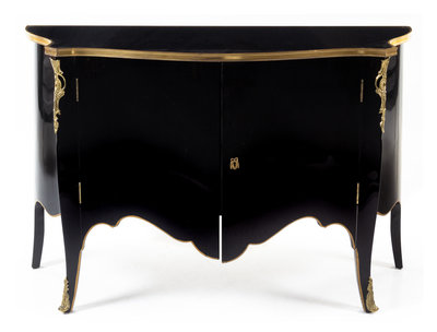 A Louis XV Style Gilt Bronze Mounted Lacquered Commode Height 33 x width 58 1/2 x depth 18 1/4 inches.