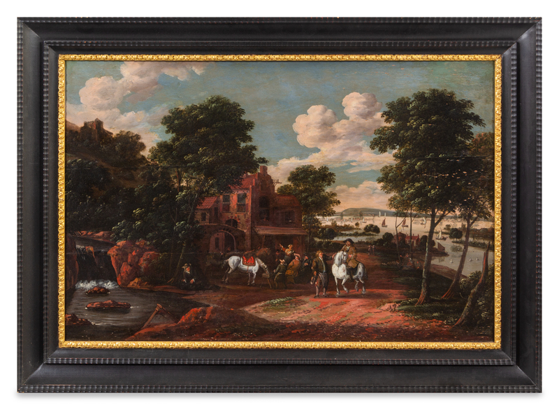 Continental School, (19th Century), Figures Outside a Riverside Tavern