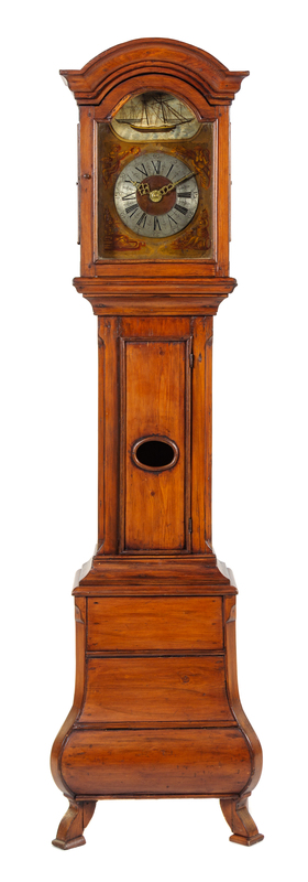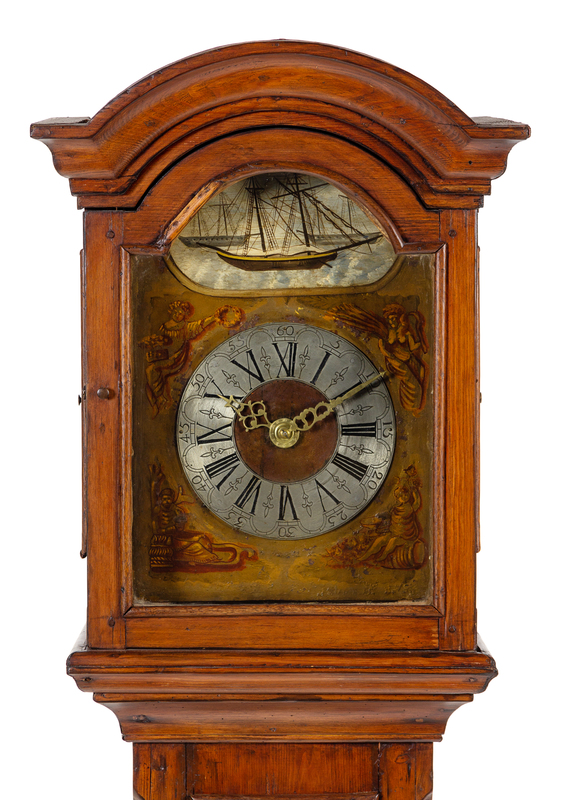 A Dutch Walnut Tall Case Clock Height 82 7/8 x width 22 x depth 13 inches.