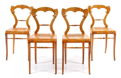 A Set of Four Biedermeier Side Chairs Height 35 3/8 inches.