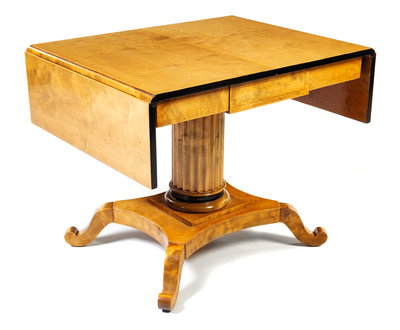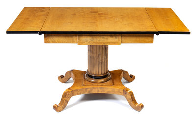 A Biedermeier Style Drop-Leaf Table Height 28 3/4 x width 53 (fully extended) x depth 27 1/4 inches.