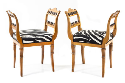 A Pair of Biedermeier Style Benches Height 31 x width 26 inches.