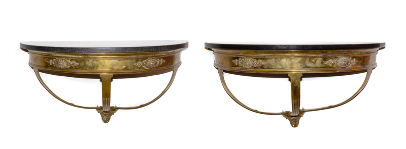 A Pair of Neoclassical Style Brass and Marble Consoles Width 31 inches.