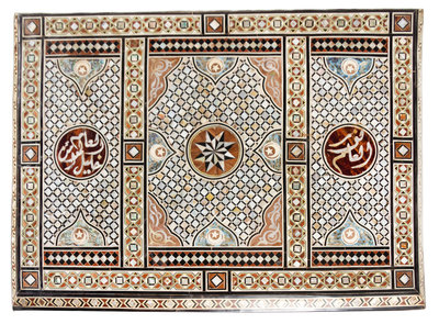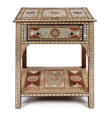 A Moorish Mother-of-Pearl Inlaid Side Table Height 33 x width 29 1/2 x depth 21 1/4 inches.