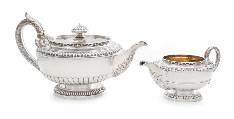 A George III Silver Teapot and Creamer, Paul Storr, London, 1810, each of squat baluster form with an egg-and-dart decorated rim, the s