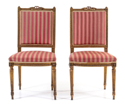 A Pair of Louis XVI Style Giltwood Side Chairs Height 38 inches.