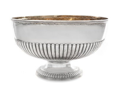 A Victorian Silver Center Bowl, Atkins Bros., Sheffield, 1894, the bowl with a fluted band, raised on a flared foot with a fluted rim.