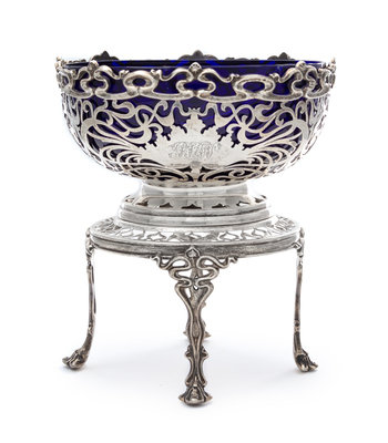An Edwardian Silver Bowl on Stand, Joseph Rodgers, Sheffield, 1903-4, in the Art Nouveau taste, the openwork bowl worked to show foliat