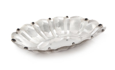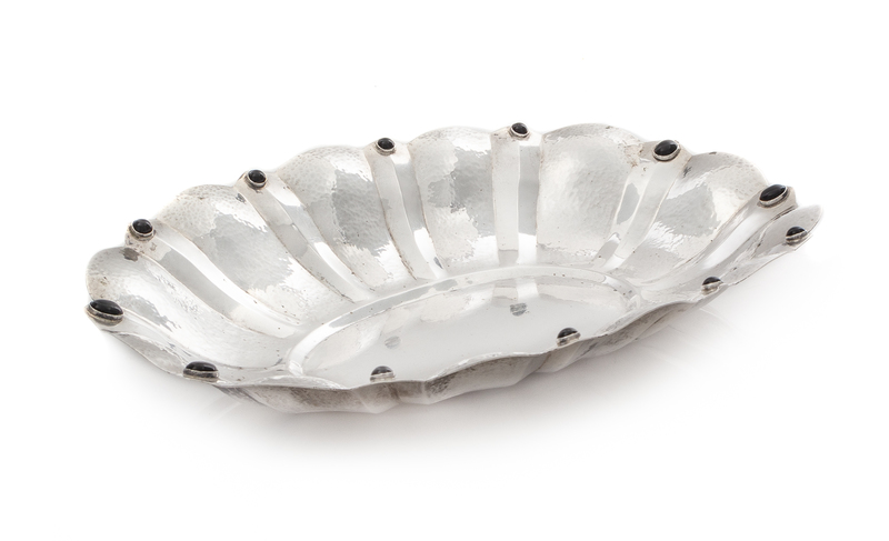A Vienna Secessionist Silver and Onyx-Inset Bowl, Likely Executed by Naum Slutzky for Wiener Werkstatte, Vienna, Circa 1915, of oval fo