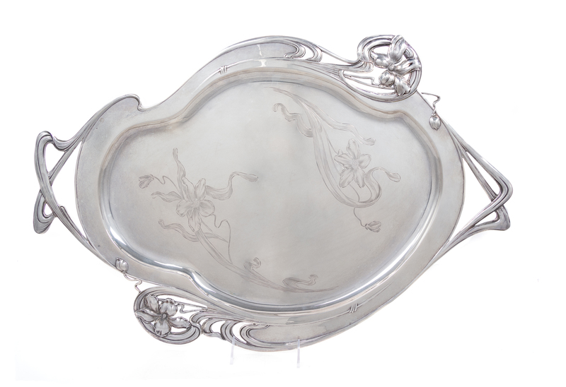An Austro-Hungarian Art Nouveau Silver Tray, Maker's Mark MG, Vienna, Late 19th/Early 20th Century, the rim worked to show floral decor