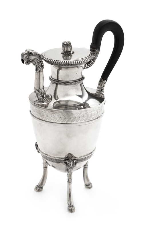 A French Silver Coffee Pot, Jean-Baptiste-Claude Odiot, Paris, First Quarter 19th Century, the hinged top with a blossom finial, the sp