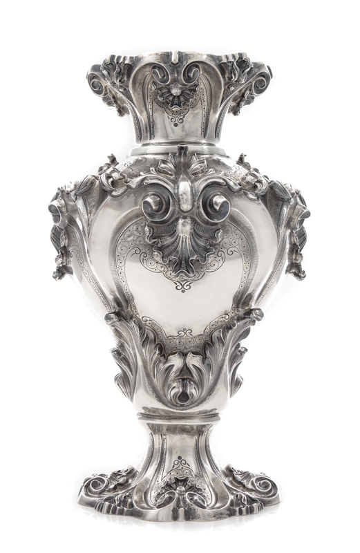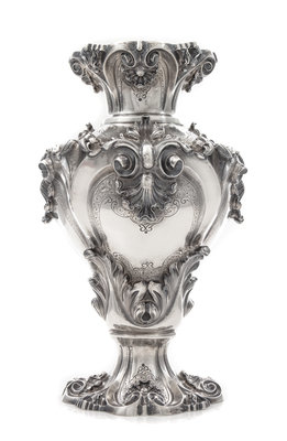 A Portuguese Silver Vase, Porto, First Half 20th Century, of baluster form with applied rocaille and foliate decoration.