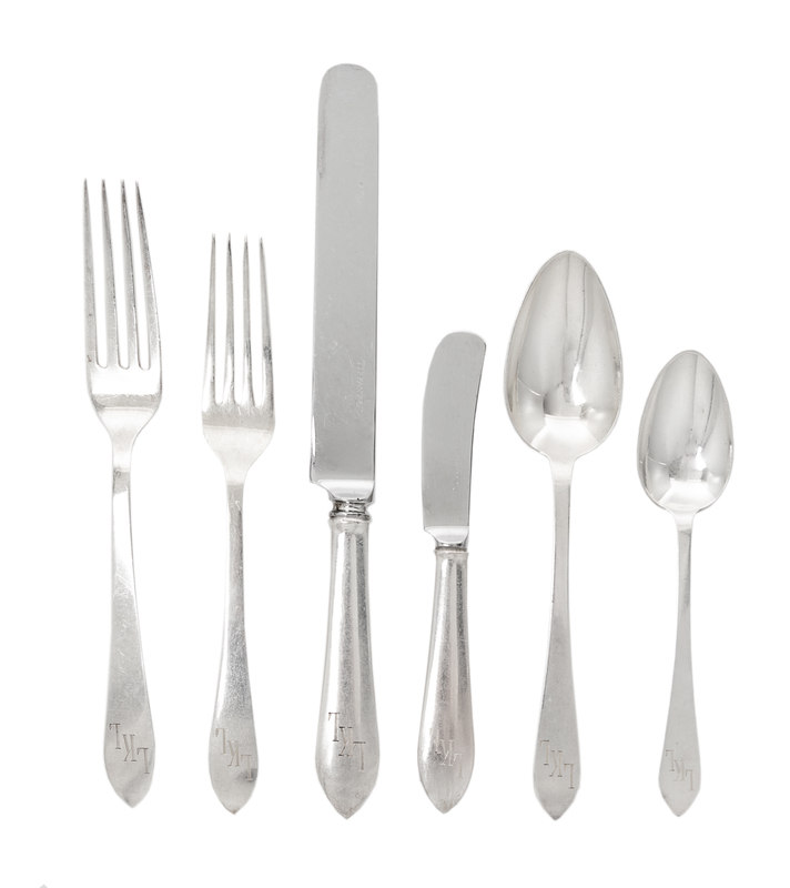 An American Silver Flatware Service, Tiffany & Co., New York, First Half 20th Century, Faneuil pattern, the handles monogrammed LKL, co