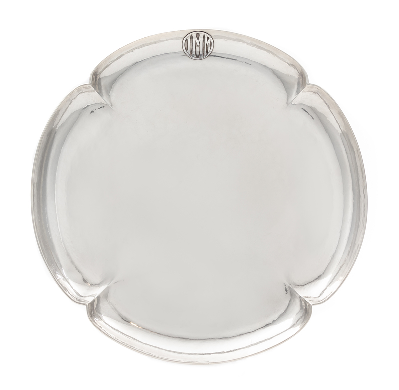An American Arts and Crafts Silver Tray, Art Silver Shop, Chicago, of quatrefoil form with a spot-hammered finish, the border with an a