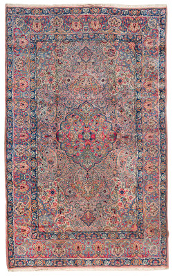 A Kirman Wool Rug 8 feet 10 inches x 5 feet 9 inches.