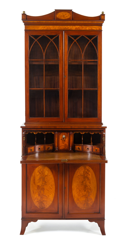A Federal Style Mahogany Secretary Bookcase Height 82 x width 30 x depth 16 1/2 inches.