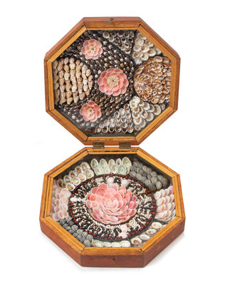 A Shellwork Sailor's Valentine Height 8 1/2 inches.