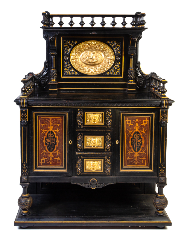 An American Aesthetic Movement Gilt Bronze Mounted Ebonized Server Height 73 x width 50 x depth 19 inches.