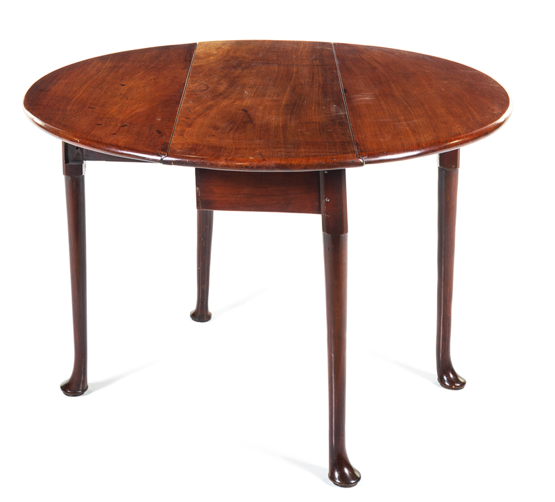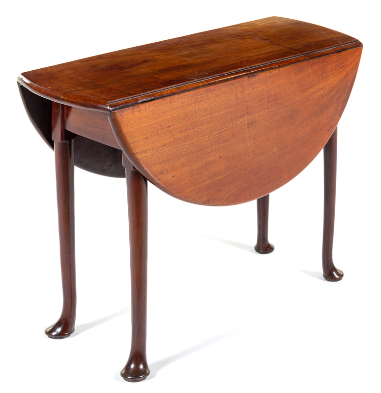 A George II Mahogany Drop-Leaf Table Height 27 1/2 x width 36 x depth 14 1/2 inches (closed).