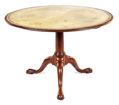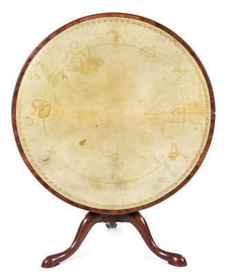 A George III Mahogany Game Table Height 28 x diameter of top 41 7/8 inches.