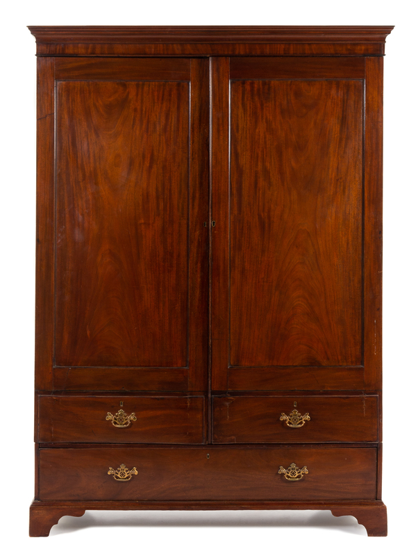 A George III Mahogany Wardrobe Height 83 x width 61 x depth 22 inches.