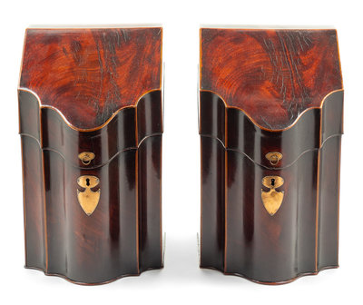A Pair of George III Mahogany Cutlery Boxes Height 14 1/2 inches.